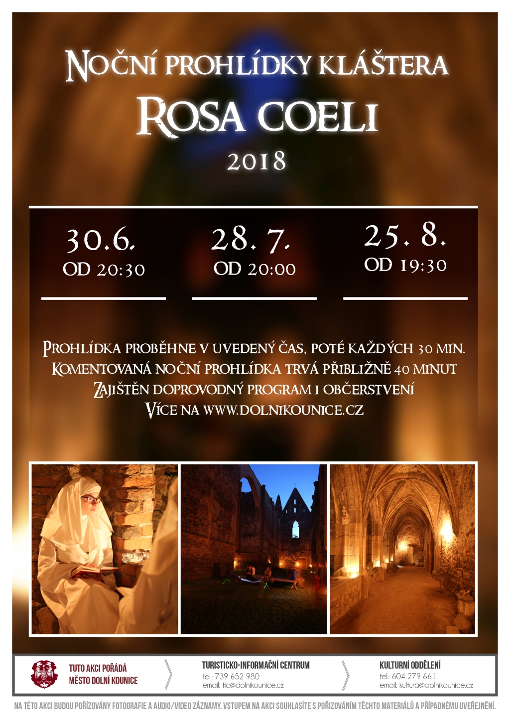Líbí se vám prostory kláštera Rosa coeli v Dolních Kounicích? Cítíte tu zvláštní energii sálající z tohoto místa? A nebo patříte mezi ty, kteří toto zajímavé a krásné místo ještě nenavštívili? Nabízíme vám hned tři akce, které můžete kromě běžné prohlídky kláštera v měsíci srpnu navštívit.