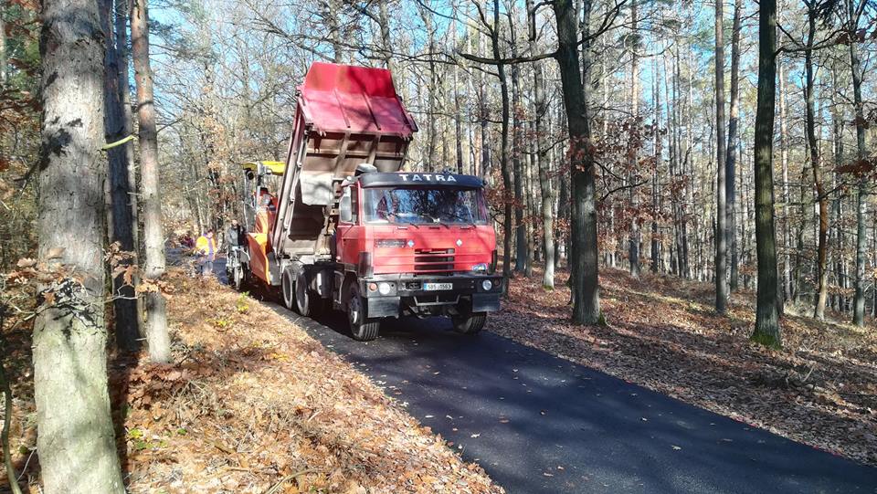 V listopadu 2018 byl tento asi pětikilometrový úsek důkladně opraven a poskytuje nyní komfortní svezení. Tato obslužná komunikace Lesů ČR je na konci, pod prudkým sjezdem do Oslavan, vybavena uzamykatelnou závorou, kterou však cyklisté mohou objet. Z toho vyplývá pro cyklisty sjíždějící do ulice V Gruntech nezbytná opatrnost. Stejná závora je u výjezdu k Milošovu, ta je ale na rovinatém úseku a cyklisté ji rovněž mohou objet.