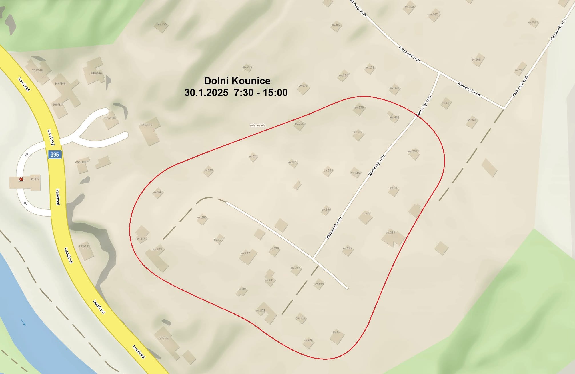 Oznámení o přerušení dodávky elektrické energie 30. 1. 2025 od 7:30 do 15:00 hod. v oblasti Kamenného vrchu.