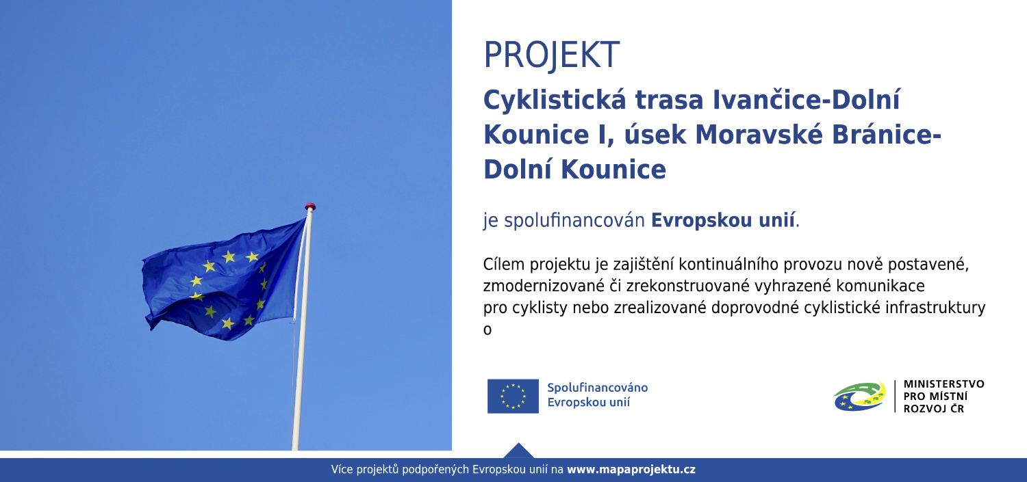 Cílem projektu Cyklistická trasa Ivančice-Dolní Kounice I, úsek Moravské Bránice-Dolní Kounice je vybudování nové cyklistické stezky se smíšeným provozem obousměrné v délce 4005 m s živičnou konstrukcí. V MRI Ivančicko byla doposud vybudována jediná cyklostezka, která splňuje základní bezpečnostní parametry a umožňuje provoz cyklistů s vyloučením automobilové dopravy a to Oslavany – Ivančice. Rovněž komunikace Lesů ČR v úseku – Ketkovice – Oslavany, vybudovaná jako dočasná objízdná trasa autobusové dopravy, splňuje parametry cyklostezky. Nově projektovaná cyklostezka od Ivančic podél řeky Jihlavy na Moravské Bránice a Dolní Kounice výrazně přispěje jednak k bezpečnosti silničního provozu a bude i přínosem pro rozvoj Dolnokounicka jako atraktivního cíle rekreační cykloturistiky.
