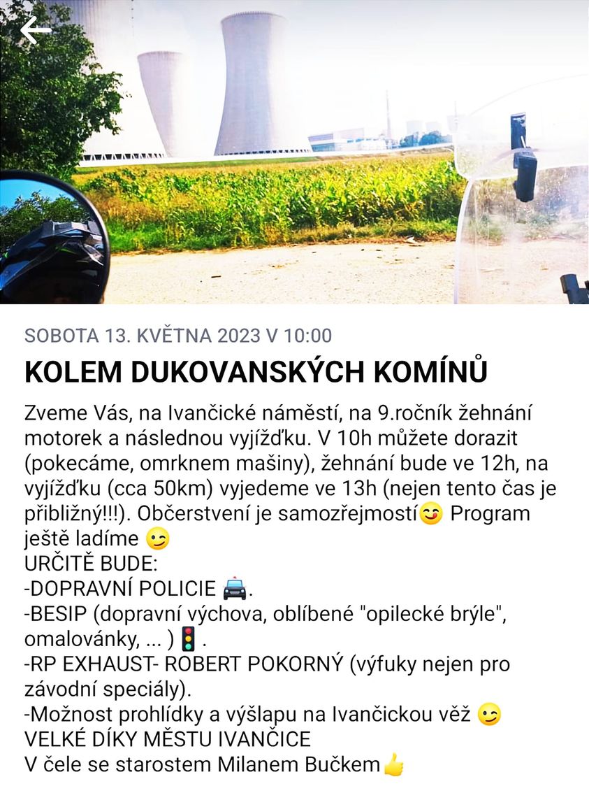 Kolem dukovanských komínů – motorkářská vyjížďka
