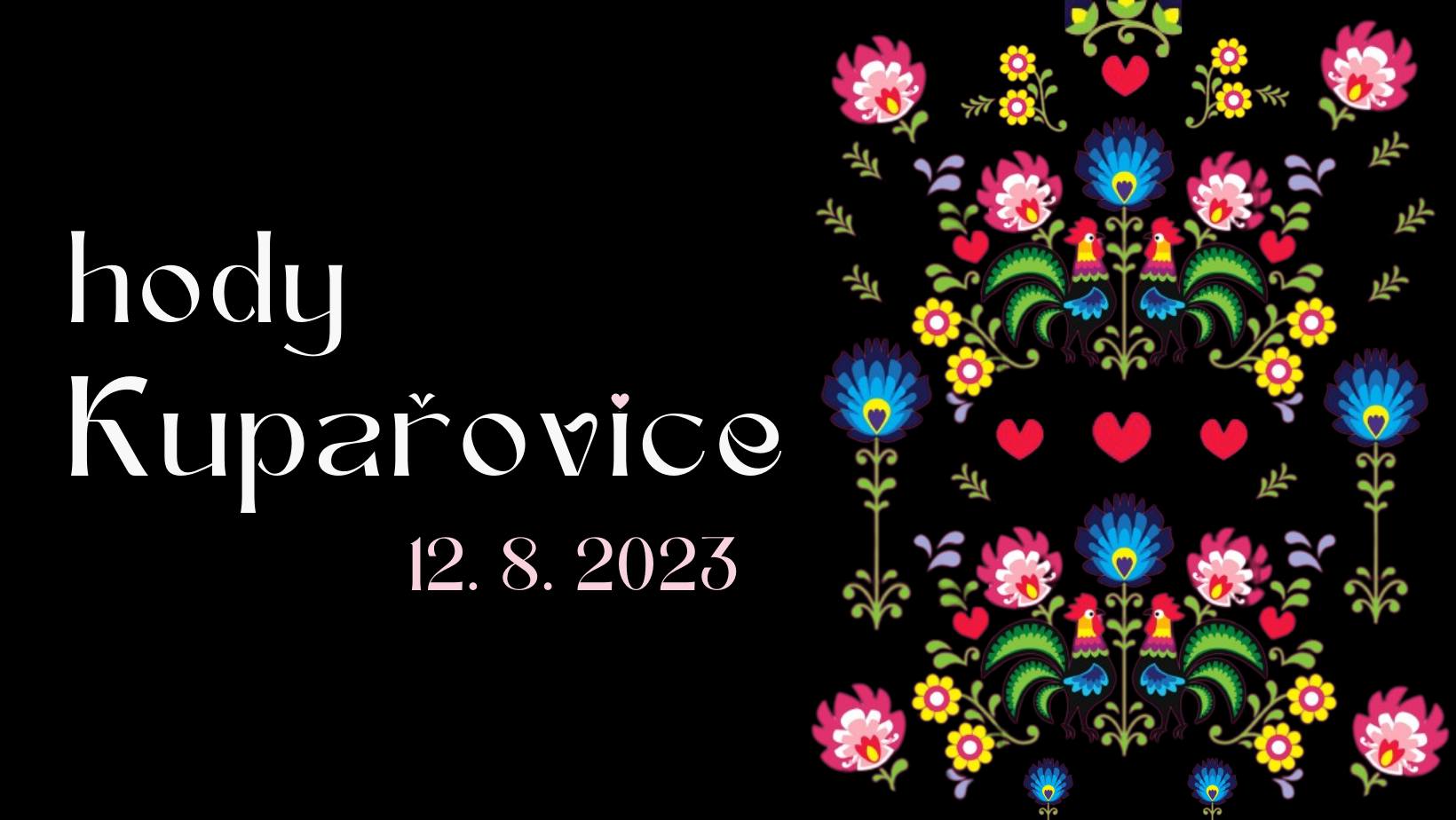 Kupařovická chasa vás srdečně zve na krojované hody, které se budou tradičně odehrávat v areálu fotbalového hřiště 12. srpna 2023 v Kupařovicích.