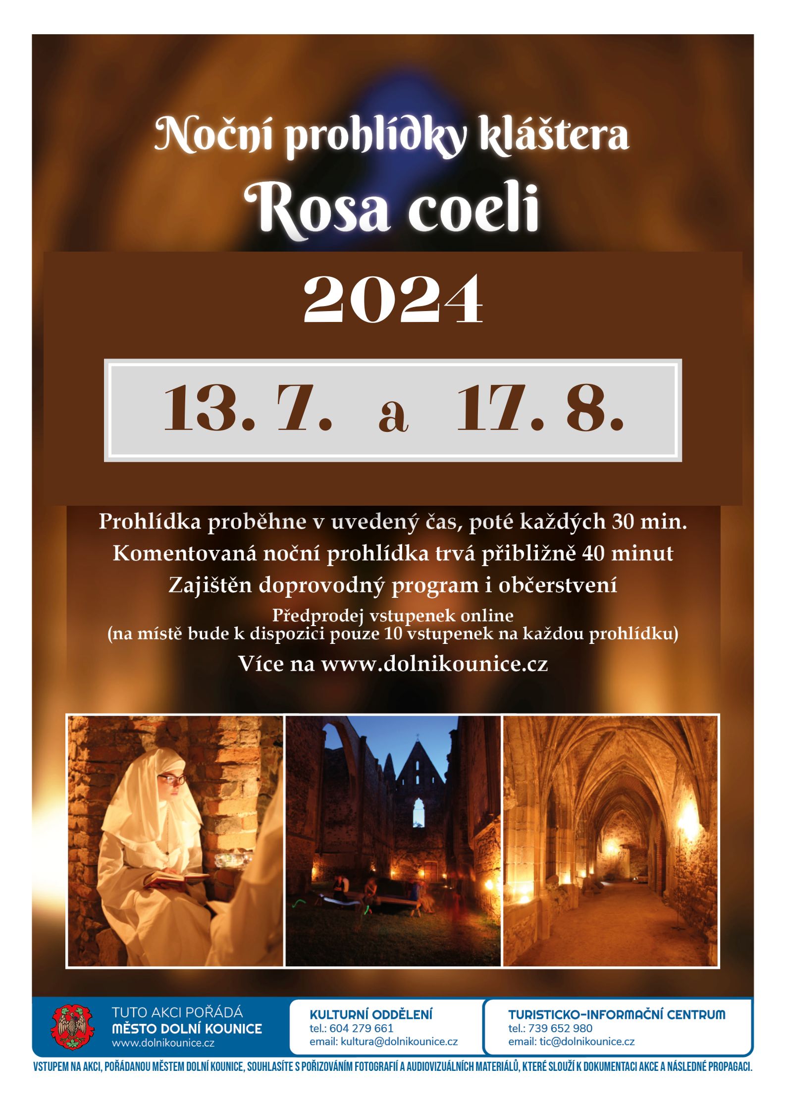 Zažijte nevšední zážitek při noční prohlídce romantické zříceniny kláštera Rosa coeli za svitu loučí a měsíce. Příležitostí navštívit klášter Rosa coeli v noci je jen několik do roka a toto je právě jedna z nich.