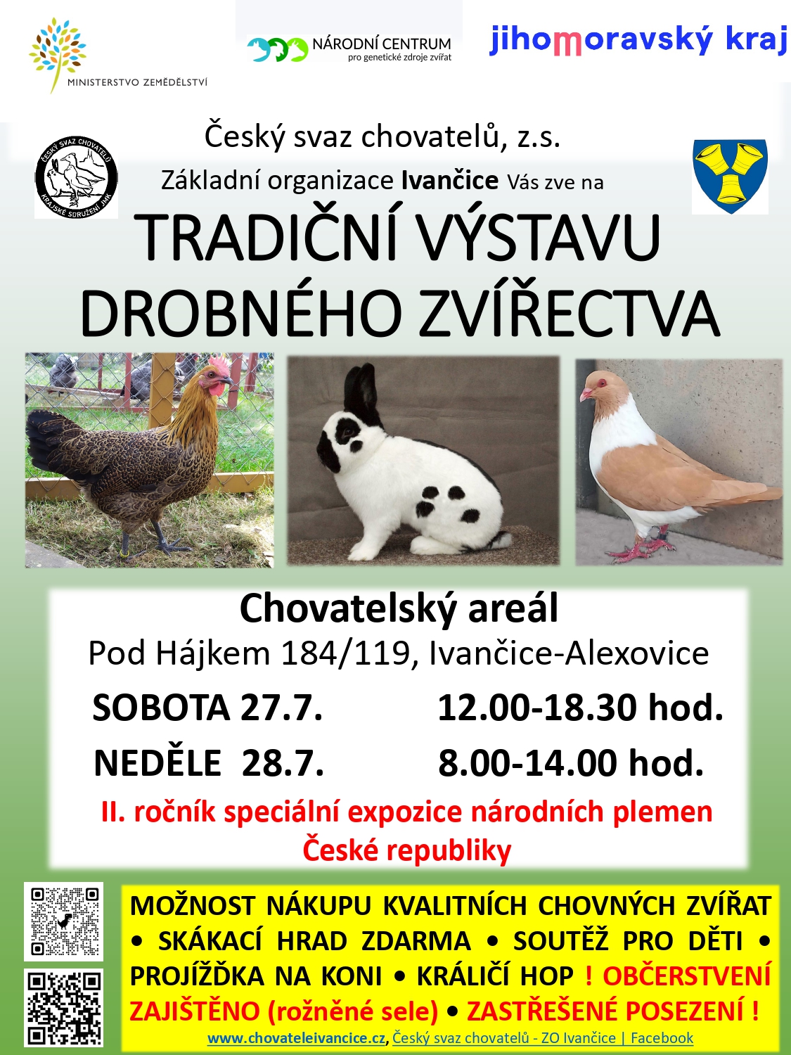 Základní organizace Českého svazu chovatelů Ivančice srdečně zve k návštěvě a obeslání tradiční pouťové výstavy drobných zvířat, která se bude konat 27. – 28. 7. 2024 v chovatelském areálu na ulici Pod Hájkem.