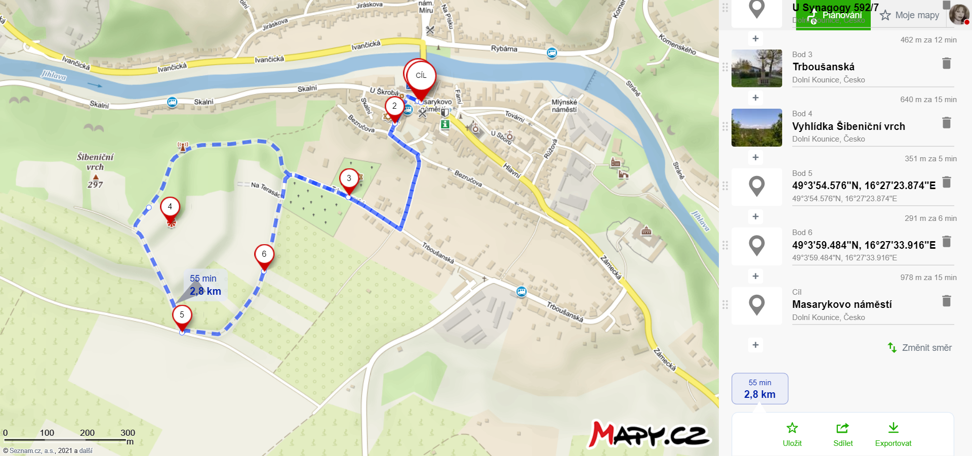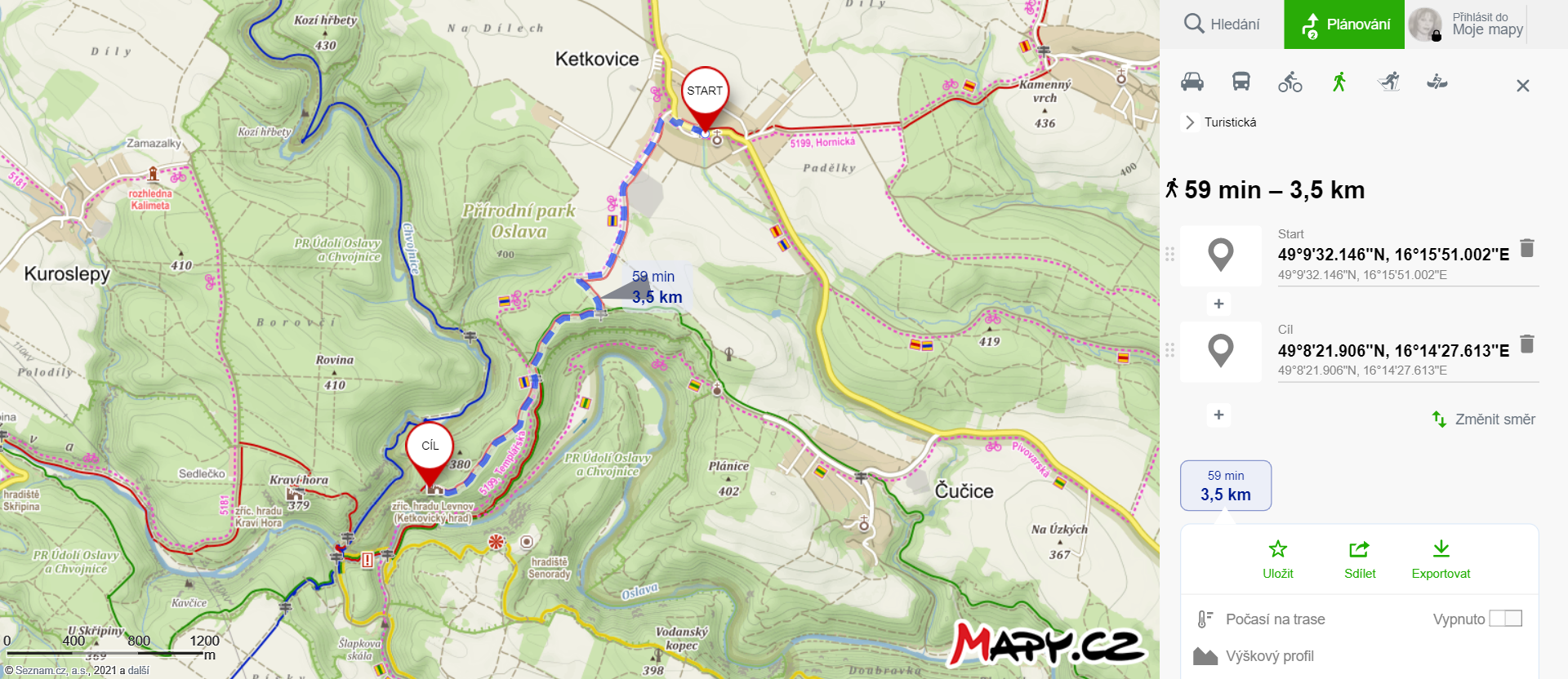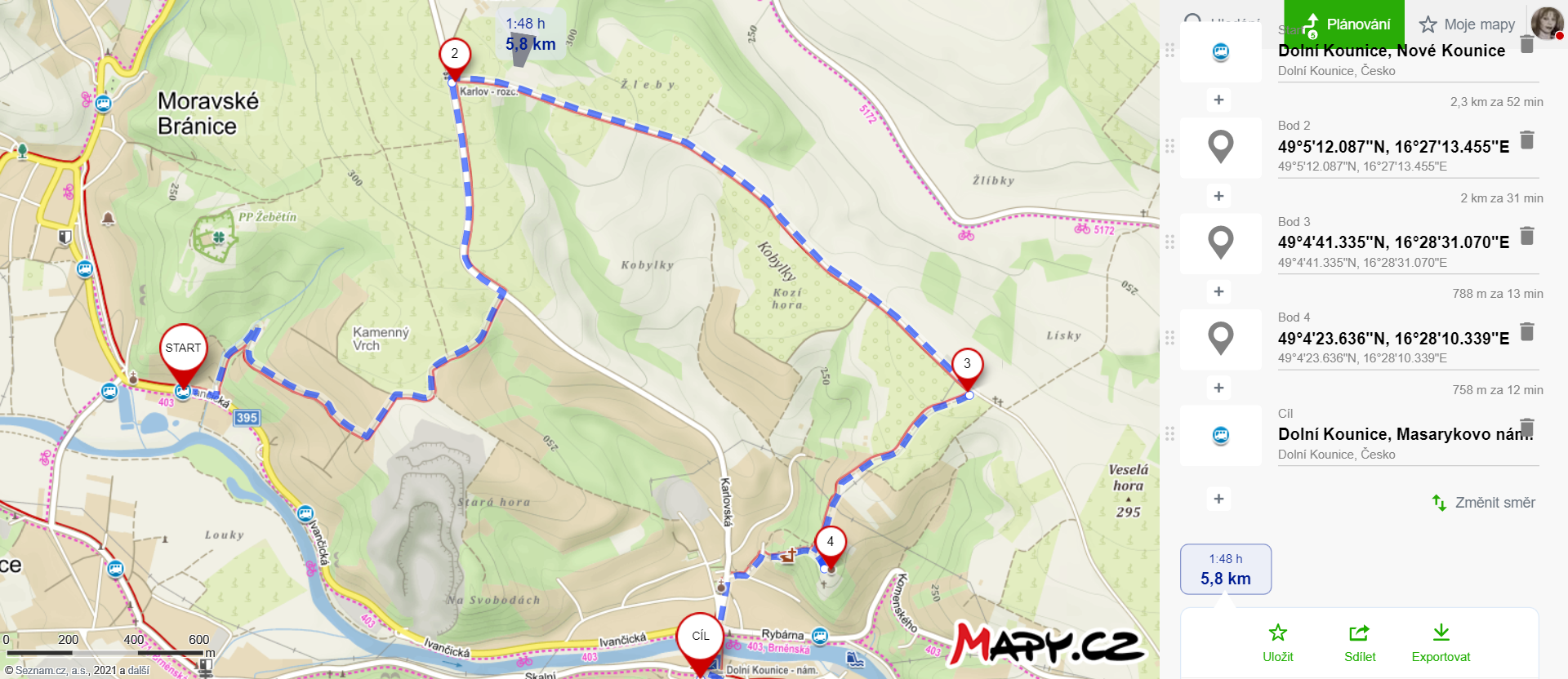 Mapový průvodce, kde v Dolních Kounicích najdete zajímavá místa nebo kam všude si můžete zajít na procházku